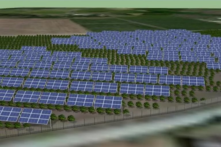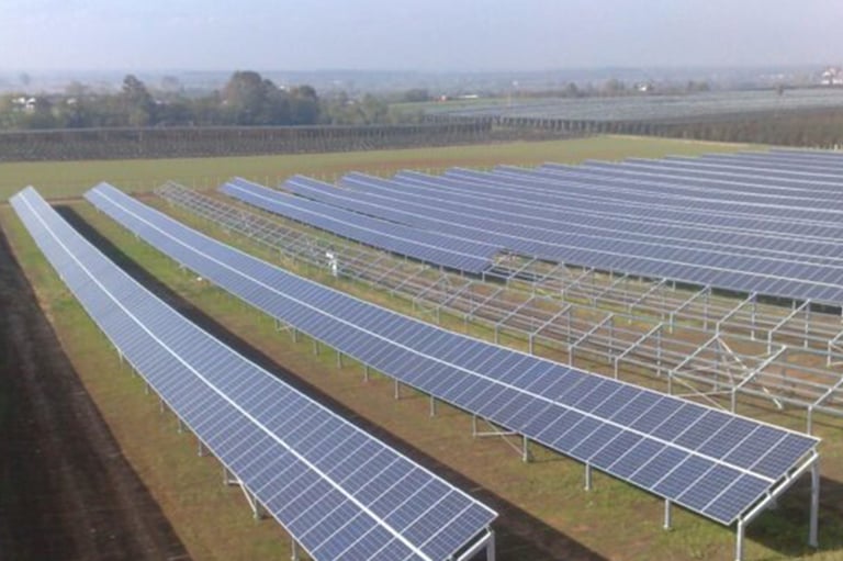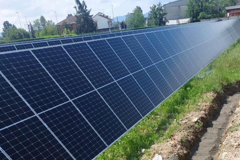 Photovoltaic plant located in the Municipality of Bene Vagienna, in the Province of Cuneo, featuring ground-mounted modules installed on former landfill sites and agricultural areas.