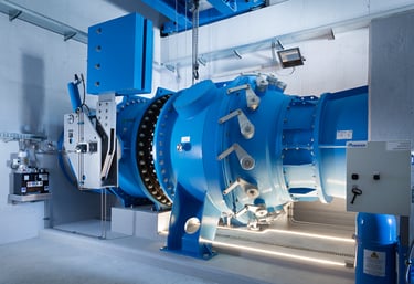 Production of renewable energy through hydropower plants, ensuring efficiency and sustainability.